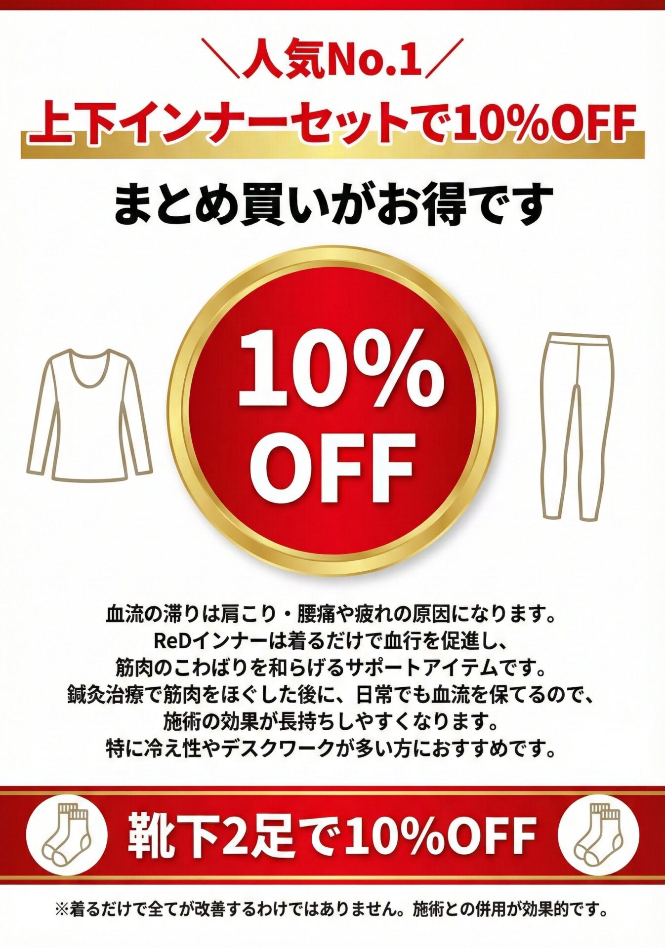 当院では、ReDの上下セットを10%OFFでご購入いただけます。